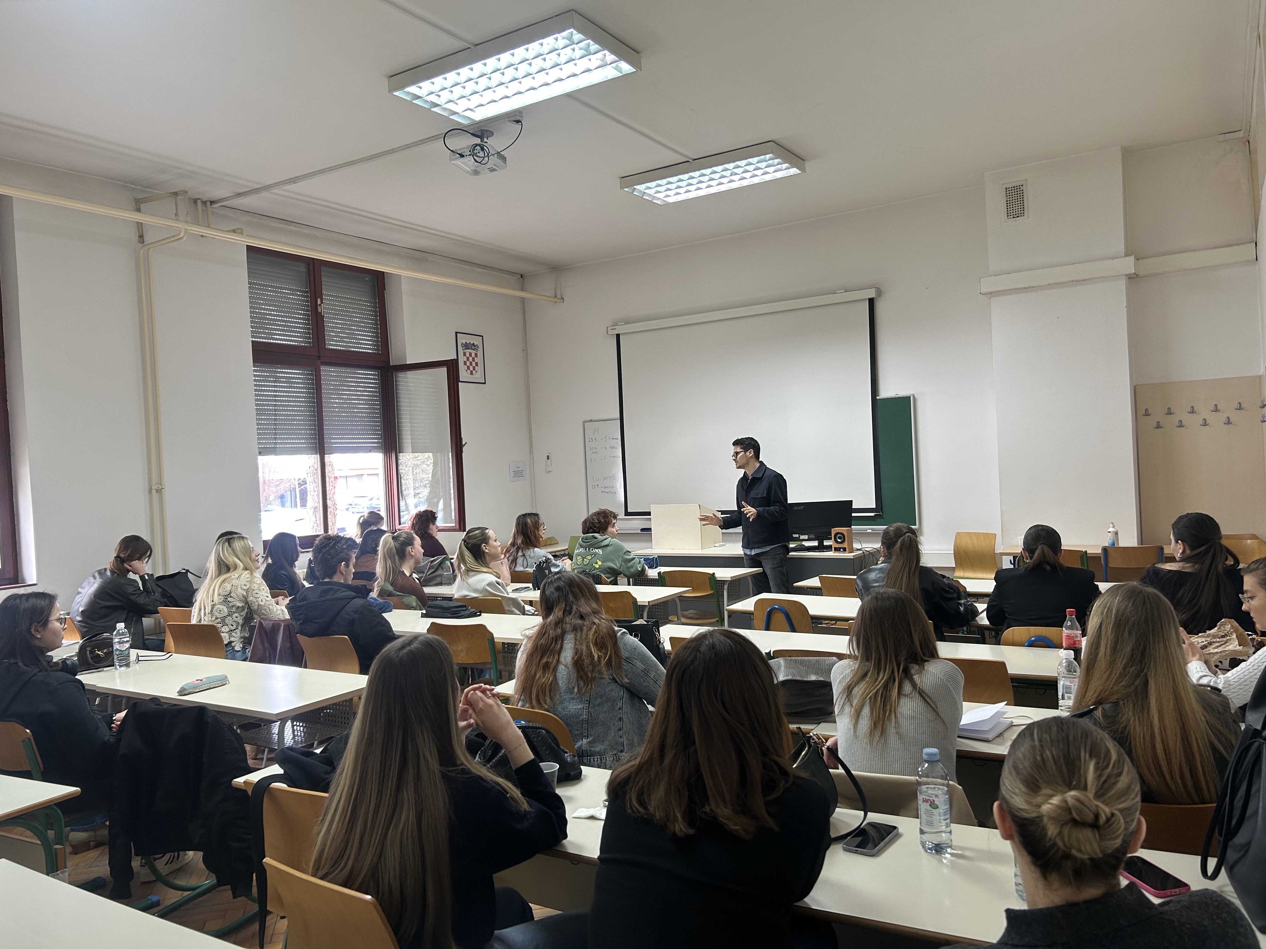 Tijekom predavanja govorio je o javnoj komunikaciji institucija u doba ekonomije pažnje, ističući promjene uzrokovane digitalnim medijima i društvenim mrežama, pri čemu je kroz konkretne primjere iz političkih kampanja na kojima je radio studentima približio kako u praksi izgleda osmišljavanje i provedba komunikacijskih strategija. Kao osnivač agencije Narativ komunikacije i redoviti politički analitičar, studentima je pružio uvid u praktične aspekte političke komunikacije, objašnjavajući kako se kreiraju političke poruke, upravlja imidžem političara te kako mediji i javnost oblikuju percepciju političkih aktera.