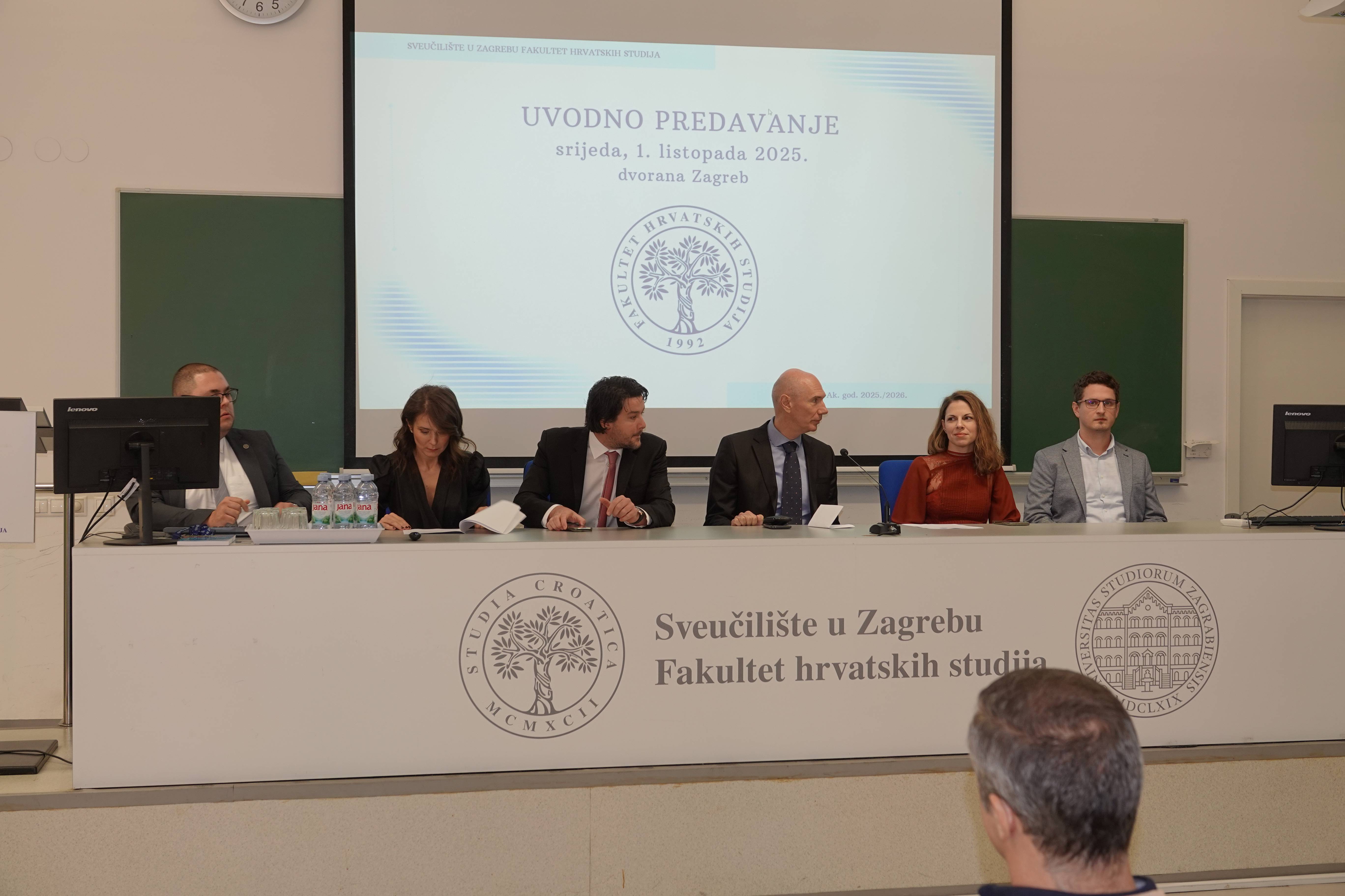 U srijedu, 1. listopada 2025. s početkom u 11 sati održano je uvodno predavanje za studente prve godine prijediplomskih studija Fakulteta hrvatskih studija. Uvodni dio započeo je intoniranjem hrvatske himne nakon čega su pozdravne govore održali dekan Fakultet hrvatskih studija izv. prof. dr. sc. Dario Vučenović i prodekan za nastavu i studente doc. dr. sc. Vanja Kopilaš. Uvodno predavanje održao je izv. prof. dr. sc. Sandro Skansi na temu „Umjetna inteligencija – apokalipsa i tosteri“. Studente je zatim pozdravila i predsjednica Studentskoga zbora Iva Ignjačić, a informacije o tehničkoj podršci novim je studentima dao voditelj računalne službe Ivan Kordić.