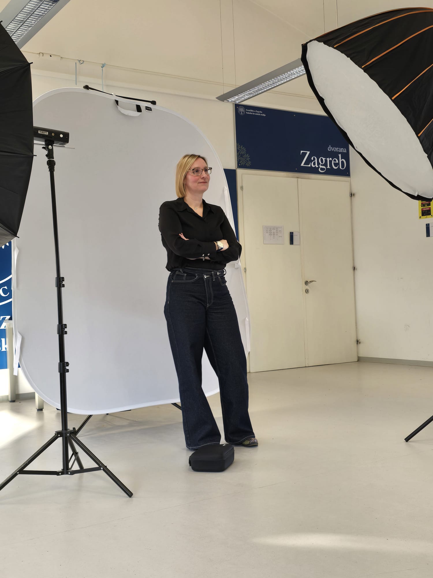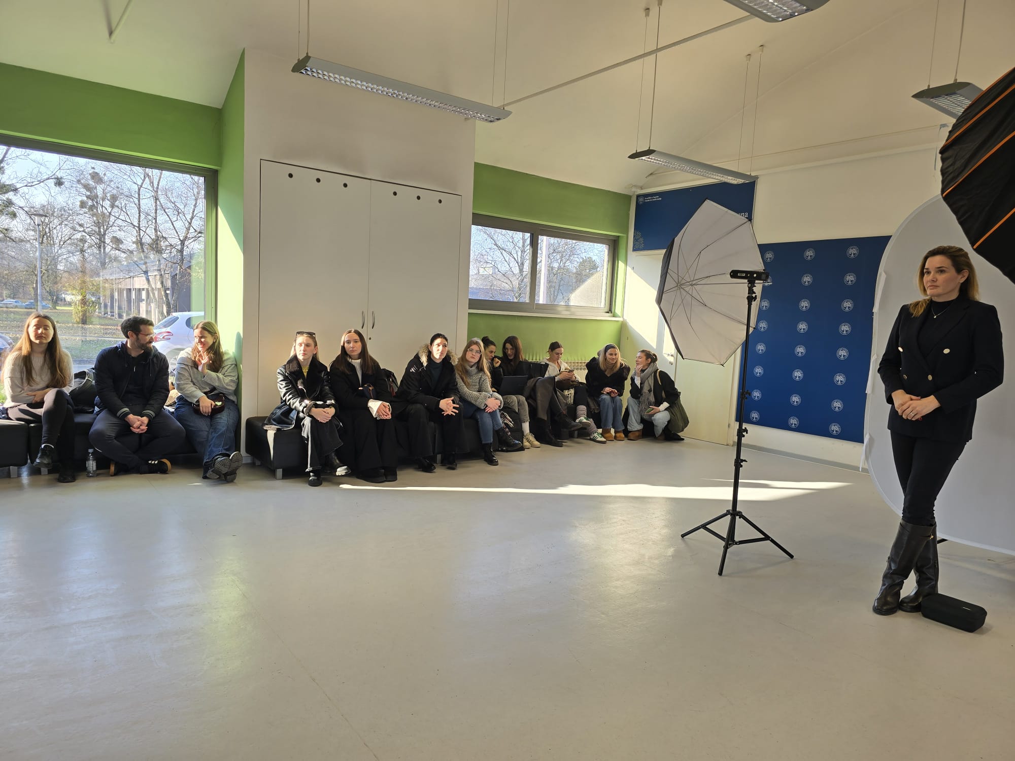 An additional value of this photo session was its educational dimension. The session was attended live by students of the graduate programme in Communication Studies as part of the course The Profession of Journalism, in which Dr. Lana Pavić also serves as an external associate. Students had the opportunity to observe first-hand the process of professional preparation for studio photography, approaches to working with portrait subjects, and the technical and communication aspects of photography.